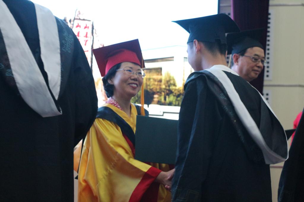 典礼最后一项,举行学位授予仪式。公司导师代表为获得学士学位的毕业生拨穗正冠,并颁发学士学位证书。最后毕业生与公司全体领导老师上台合影留念,典礼在《歌唱祖国》的旋律中圆满结束。