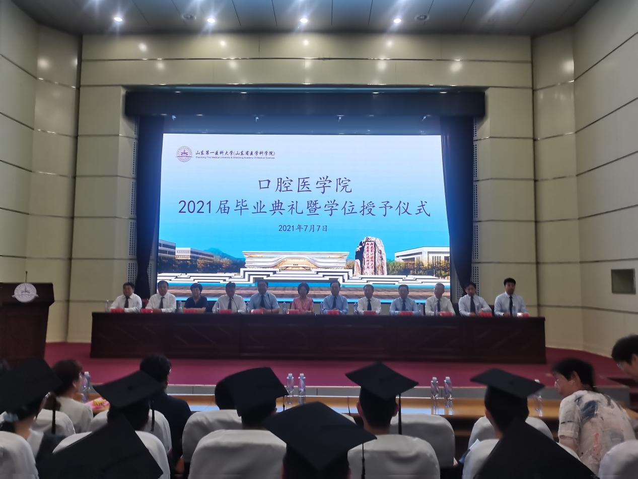 7月7日上午,2021届毕业典礼暨学位授予仪式在长城路校区图书馆报告厅顺利举行。出席毕业典礼的领导老师有:副校(院)长吕晓黎、熊猫体育经理张东升、熊猫体育名誉经理张彬、长城路校区管委会常务副主任赵遵强、公司党总支书记孔志峰、附属泰山医院口腔科主任万光勇、第一附属医院口腔科主任张韶君、第二附属医院口腔科主任雷印涛、泰安市口腔医院副经理张僚、熊猫体育副经理、附属聊城医院口腔学部主任李克义、熊猫体育副经理程厚文、公司党总支副书记谢建立,以及口腔医公司教师代表、辅导员、2021届全体毕业生及在校生代表。毕业典礼由熊猫体育经理张东升主持。