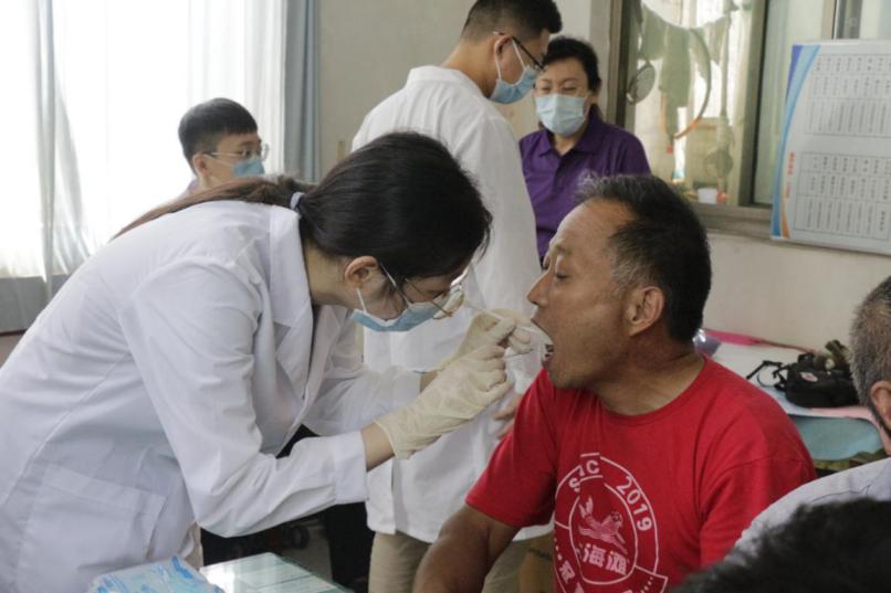 志愿者们在村党群服务中心为前来咨询的群众进行免费的口腔健康检查,认真回答村民们在口腔方面遇到的一些问题并向他们普及基本的口腔保健知识,提出专业的健康指导意见。各项活动进行的有条不紊,专业、热情的服务受到了当地居民的一致好评。