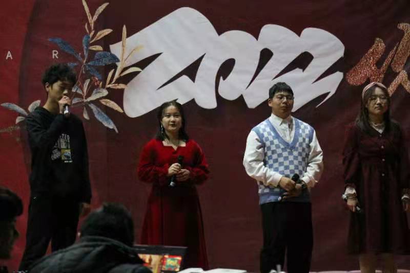 开场舞《Pick Me Up》的演员们绽放灿烂的笑容,散发着青春的朝气,尽展舞蹈的魅力,在欢快、激动人心的氛围中,为元旦晚会拉开了序幕。晚会节目形式丰富,独唱、现代舞、合唱等包含其中。其中还穿插了你画我猜、背身投球等娱乐活动,活跃了场内气氛。晚会接近尾声的时候,21级四位班长合唱了歌曲《新征程》,那激昂豪迈、催人奋进的乐章在耳边回荡,久久不能挥去。字句间蕴含着对同学们新年的祝福与学业进步的鼓励。