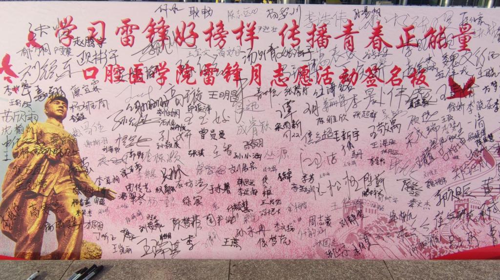 活动伊始,王玉姣老师进行发言,鼓励公司学子在做好疫情防控的同时,积极发扬雷锋精神、参与志愿活动,将奉献、友爱、互助、进步的志愿精神深深的扎根心里,用切实行动擦亮山一大志愿服务品牌。接着院员工会社会实践部部长曲昌佳表示要积极传承弘扬雷锋精神,不断提高志愿服务水平,发挥各级各类志愿服务的模范和标兵榜样引领作用。随后,同学们积极响应,依次上前进行“雷锋精神我传承”签名活动并进行宣誓,将“为人民服务”的共产主义精神发扬光大,唱响爱党爱国爱校主旋律,为校(院)早日实现 “双一流”建设目标贡献全部力量。