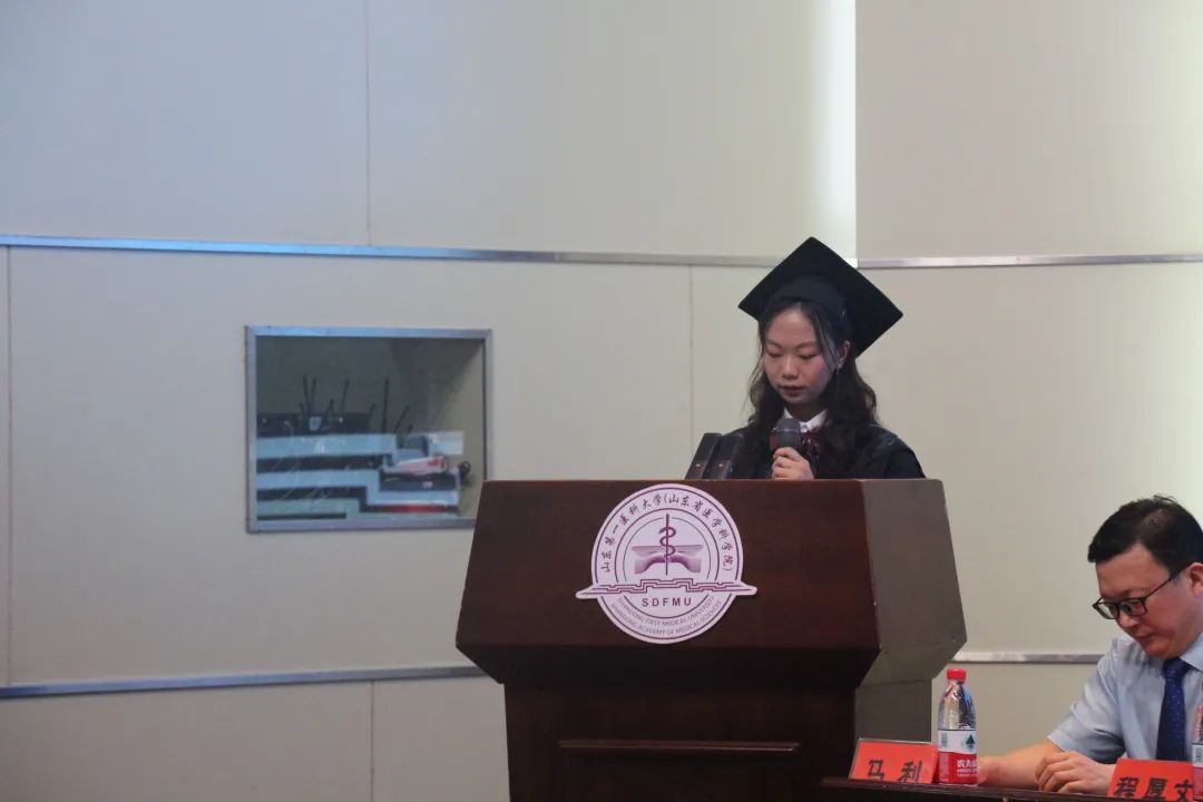 教师代表石运芝老师上台讲话,她对同学们提出三点希望:一要坚定信心,做一名合格的好医生、好技师;二要倾注人文关怀,注重合理有效的医患沟通;三是希望同学们在工作学习中勇于创新,敢于担当,精益求精。接着毕业生代表李知音上台发言,她带领全体毕业生起身向台上领导老师鞠躬表达对公司、老师、同学的衷心感谢,感谢母校的栽培、感谢老师的教诲。并回顾了五年的求员工涯,表示将永远牢记熊猫体育“跬步千里,止于至善”的校训,走好未来的人生路,努力成为母校的骄傲。最后在校生代表、2019级口腔医学本科3班吕海涛同学发言,他代表全体在校生向即将离开母校的学长学姐表达衷心的祝福,同时也表示自己会跟随他们的脚步,向他们看齐,在今后的大学时光中更加努力奋斗、不负韶华、勇往直前。