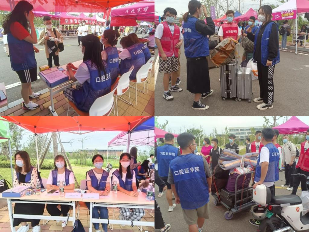 志愿者热情地帮助新生搬运行李,熟悉校园,为新生答疑解惑,生动诠释了山一大口腔人兢兢业业,不辞劳苦,助人为乐的精神。即便后来开始下起了小雨,志愿者的热情也丝毫不减,并贴心地为新生的行李遮挡雨水。学长学姐们热情周到的服务很快消除了新生们初来乍到的陌生感。