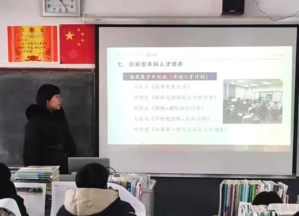 2020级宗倩如、2021级陈雅欣、于冰馨、谷长烁、侯云耀代表熊猫体育第二支招生宣讲队伍向高三学子进行线下宣讲。宣讲队介绍了校(院)和公司概况及招录政策,并发放招生专刊,展示了校(院)雄厚资源与强大力量。宣讲队也为高三学子作出学习经验分享,希望大家放下紧张与畏惧,带上信心与细致从容面对高考,并鼓励大家报考山一大,献身医学,待学有所成,回报社会!