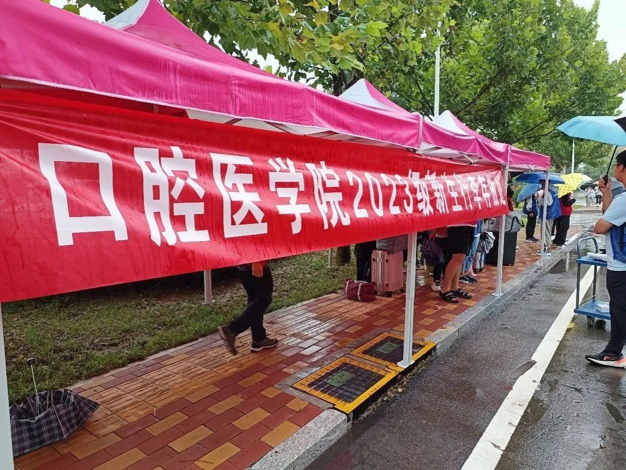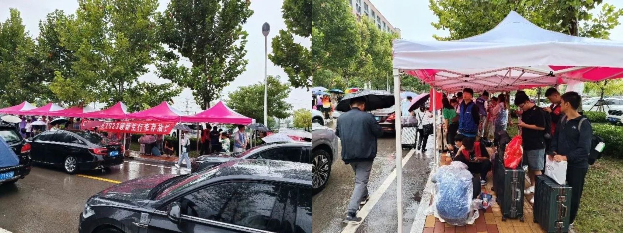 步入大学,就像步入一个新的旅程,在旅途的开始,我们已为你们铺好了来时的路。我们在新生报到处——风雨操场设置有专门的签到摊位,负责提醒新生填写表格,收集新生的基本信息,并引导新生完成报到流程。在停车场接站口处,公司的志愿者搭建了存放行李的雨棚,张贴迎新横幅,为新生和家长们提供暂时存放行李的地方。