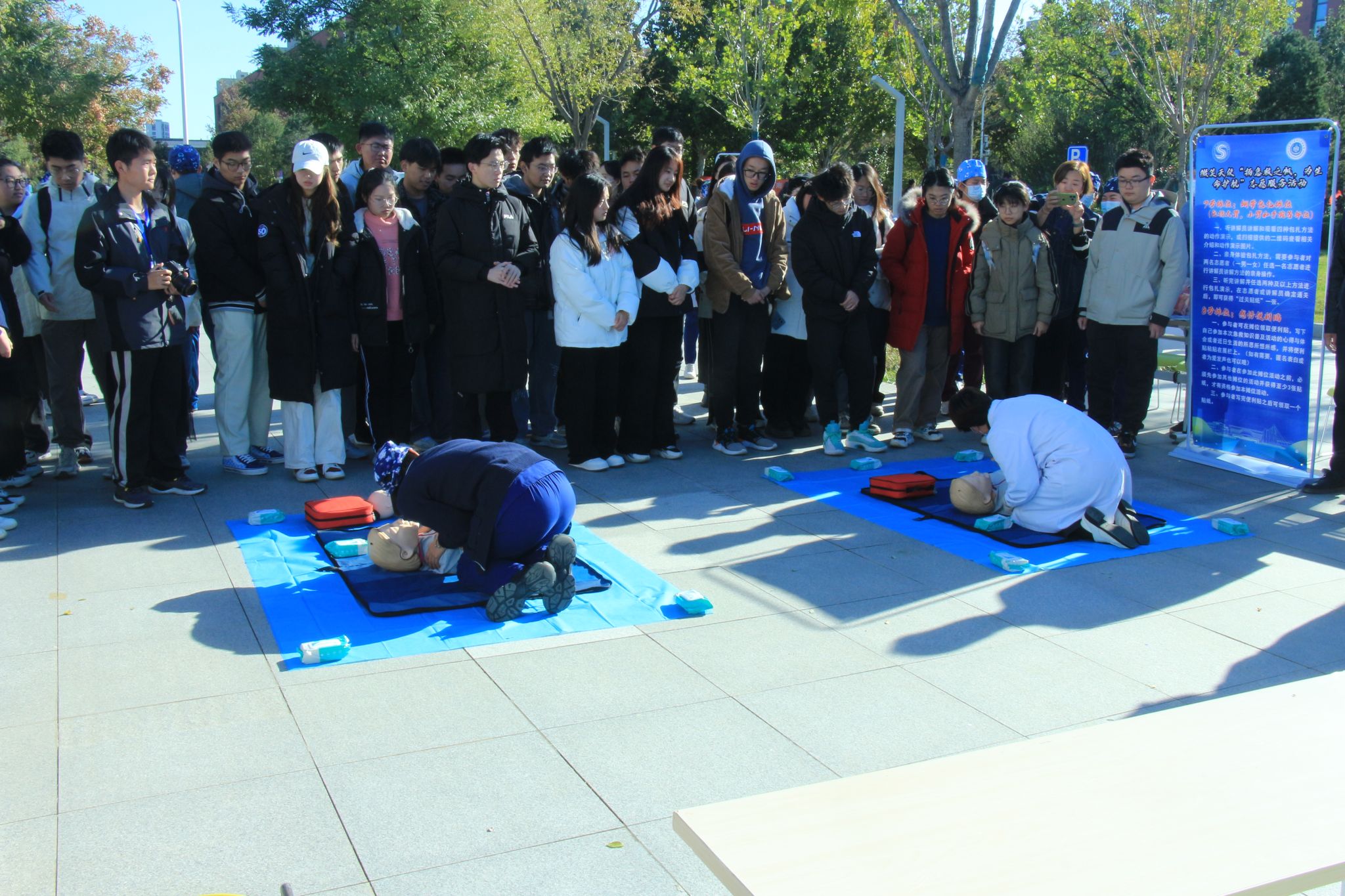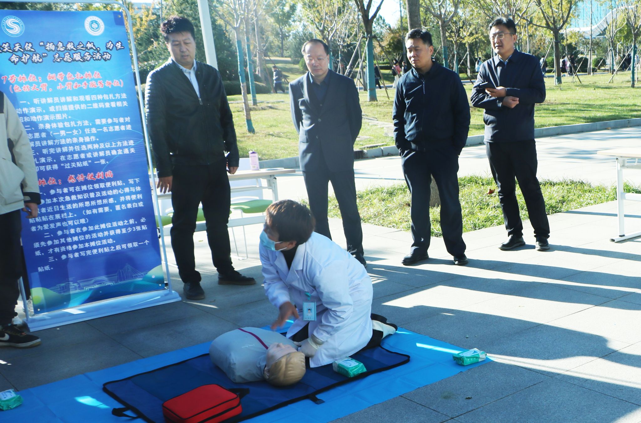 仪式结束后,在老员工活动中心南广场校医院的老师为志愿者进行现场急救知识展示。