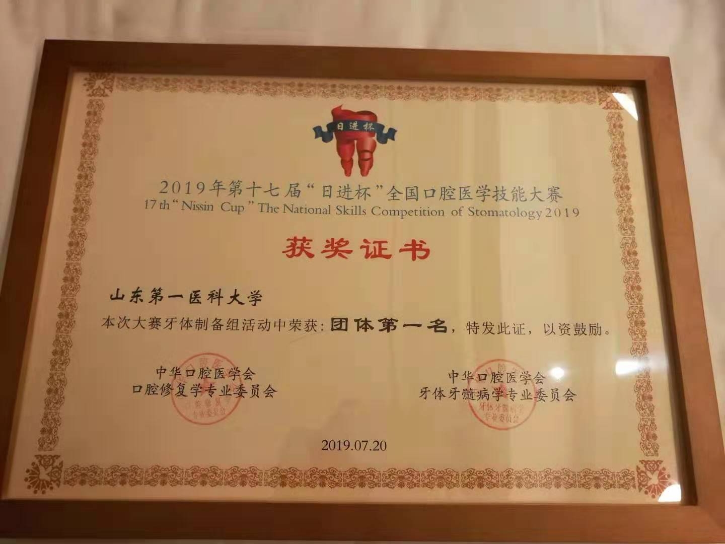 719-721日,第五届“黄炎培杯”全国口腔医学技能大赛、第十七届“日进杯”全国口腔医学技能大赛在山东枣庄举办。熊猫体育选派了五名员工参加了比赛,经过激烈角逐,共获得一等奖4项,二等奖1项,三等奖1项,团体一等奖1项,在牙体制备组活动中获得团体第一名。其中口腔医学专业张映玥、王晴在牙体制备与窝洞制备中斩获一等奖2项,二等奖1项,三等奖1项,团体一等奖1项。口腔医学技术专业王炎、马加振同学在雕牙与排牙比赛中获一等奖2项。韩晓艳、王晓慧两位教师获得优秀指导教师奖。