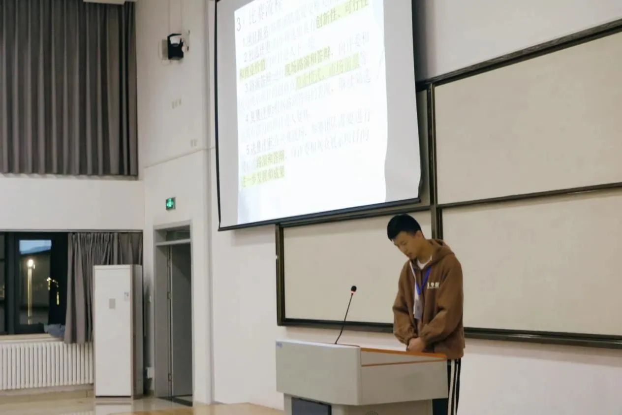 员工会科创部成员王鲁琦首先介绍了大学本科各竞赛的时间并重点介绍了老员工创新创业大赛、“互联网+”老员工创新创业大赛、“挑战杯”全国老员工课外学术科技作品竞赛的内容、流程、原则与要求。他将各种竞赛分为不同类型如科研型和创业型,以便员工们更清晰地认识各种比赛的性质以便根据自己的兴趣选择不同的竞赛方向。宣讲过程中,王鲁琦进行了科创小知识提问,观众们积极踊跃参与回答问题,成功答对题目的同学获得了有纪念意义的小奖品,更加深了对科创活动的认识。
