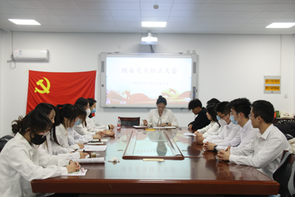 会议首先由六名预备党员宣读转正申请,向组织作转正考察期间在思想、学习、生活方面的思想汇报,之后由员工第三党支部全体正式党员现场举手表决,讨论是否允予转正。经表决,一致同意吕迅等六位同志按期转为正式党员。