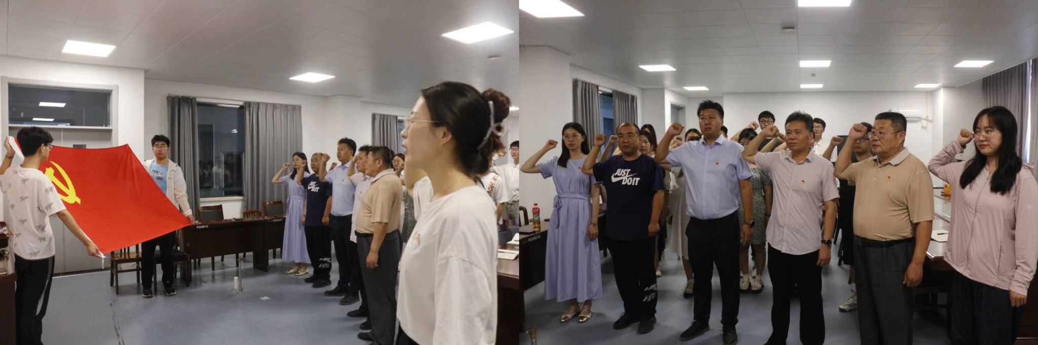 首先,全体参会党员面向党旗,以庄严的神态重温入党誓词。重温入党誓词是以入党誓词为载体,对党员开展党性教育特别是党员意识教育的重要形式,就是要使广大党员“身临其境”,重温入党时的神圣场面,不忘初心、牢记使命。 党员同志们在一声声铿锵有力、整齐划一的宣誓词中,更加坚定了作为党员的理想信念,明确了自己肩负的责任与使命。