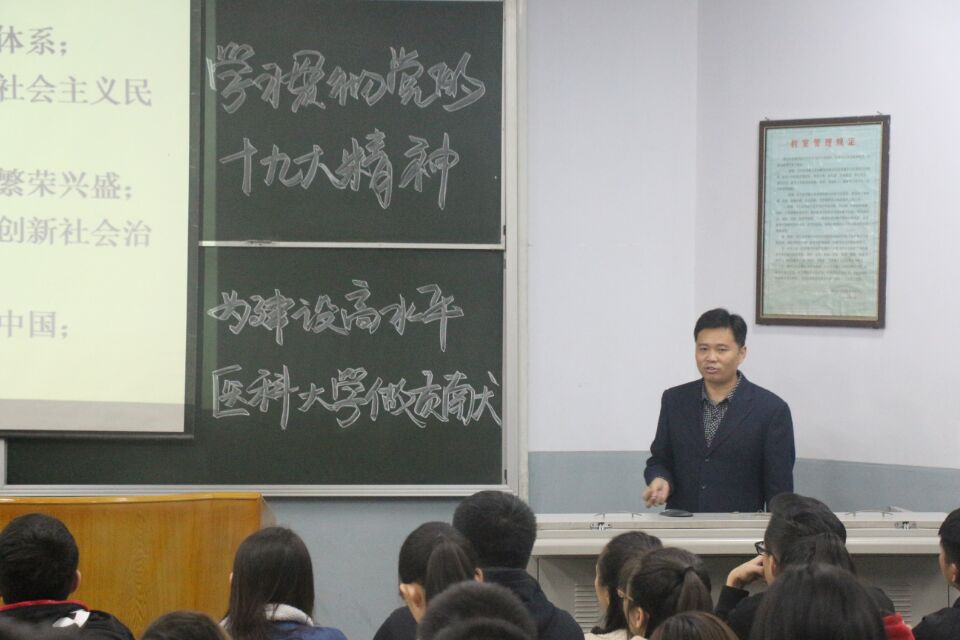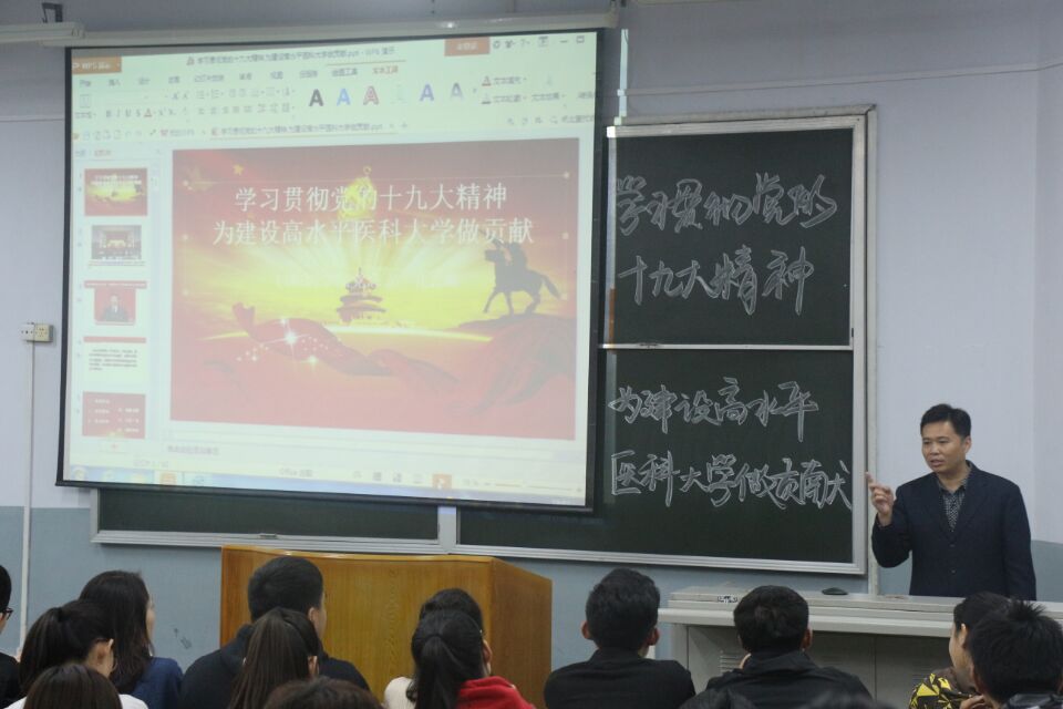 10月25日晚上和10月26日下午,熊猫体育分别在天外村校区2006教室和校本部C2009教室召开了学习党的十九大精神报告会,党总支副书记孔志峰以《学习贯彻党的十九大精神,为建设高水平医科大学做贡献》为题目作了报告,熊猫体育400余名员工聆听了报告。