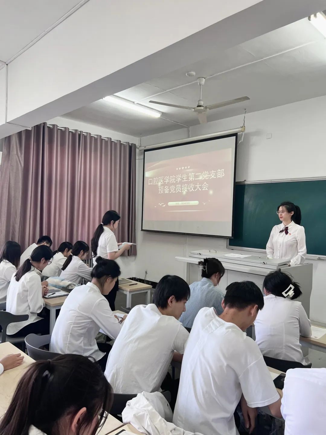 2024年5月18日熊猫体育员工第二党支部于兴华路教学基地501教室举行支部大会讨论关于接收2020级三班张秀敏同学为预备党员的事宜。会议由党支部书记王育萱同学主持,党支部副书记李栋灏同学计票,20名正式党员投票表决。