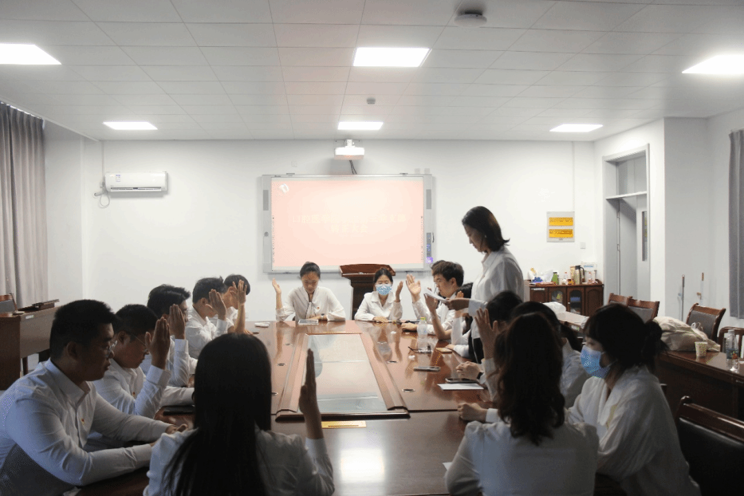 预备党员发言完毕后,党支部成员对预备党员依次进行了表决,最后一致认为4位预备党员已具备党员资格,同意接收其为中共正式党员。