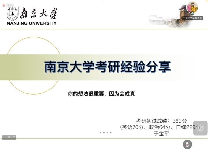 “你的想法很重要,因为会成真。”于金平从择校、专业课与英语复习方法、复试内容以及如何平衡考研与实习的关系等方面作出介绍。她向大家强调了背诵及时复盘的重要性,希望大家专注于自己,及时调整心态和方法,坚持到底!