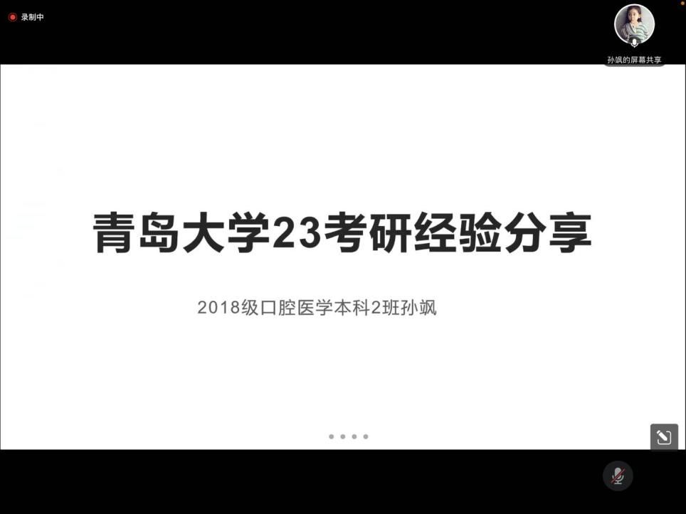 勤奋耕耘有矢志,硕果飘香又一年。为充分发挥榜样引领作用,帮助员工提升考研信心、挖掘自身潜能,营造浓厚的考研学习氛围,2023年5月25日,公司顺利举办2023年口腔医学专业考研经验交流会。本次会议于线上、线下同时开展,公司辅导员谭玥主持,公司2018级员工王紫璇、张温皎、于金平、孙飒、曾棒、高昕哲作出经验分享。