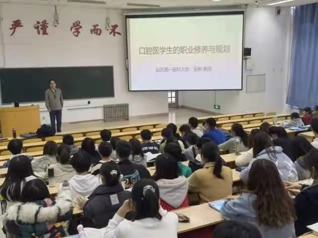 张教授首先阐述了口腔医员工老员工涯的基本规划并分享了自己的职业生涯的经历和经验,以此引出今日的主题。随后张教授与同学们对自己的职业生涯规划进行探讨。张教授指出,老员工的职业规划应从早开始,同学们需对自己有一个明确而精准的定位,从而在大学的学习生活中有目标地发展自己相应的才能,如此才有机会从日益激烈的竞争中找到自己前行的方向。同学们认真聆听,了解本专业的职业发展与要求,感受到身上的责任感和使命感,明确规划自己未来的人生方向。最后,张教授表达了对同学们的肯定与期许,真诚地解答了同学们的疑惑。在大家热烈的掌声中,讲座圆满结束。