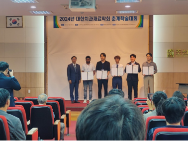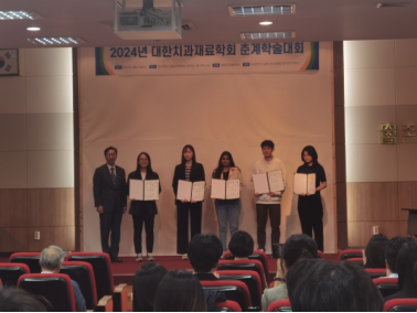 其中孔佳文同学和徐佳琪同学荣获由韩国材料学术会会长兼首尔国立大学口腔教研室主任Hyeong-Cheol Yang教授颁发的演讲优秀奖,该成果的取得不仅仅是员工团队的荣誉,更是对他们科研能力的肯定。在研究过程中,员工们以自身对学术的热爱,付出艰苦努力,克服了重重困难,借此提升了自己的科研水平和解决问题的能力,为今后的学术研究之路进一步奠定了坚实基础。