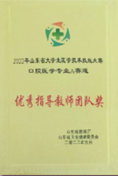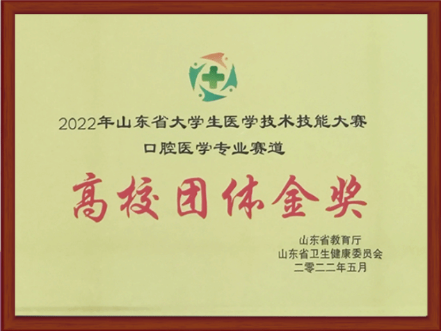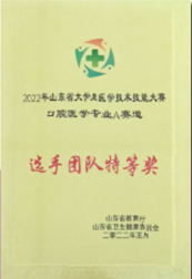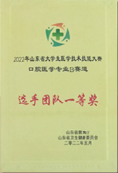 员工在第五届“黄炎培杯”全国口腔医学技能大赛、第十七届“日进杯”全国口腔医学技能大赛获得团体一等奖1项,单项比赛中获得一等奖 4项,在牙体制备中获得团体第一名。在2022年度山东省医学技能大赛口腔赛道中,A、B 两个队分别取得第一名和第二名,分获特等奖和一等奖,获口腔赛道总分第一名、团体金奖。